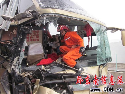 6月11日5時44分,貴州省劍河縣消防大隊值班室接到報警稱:玉凱高速劍河小麻栗路段發(fā)生一起交通事故,多人被困,請求消防官兵救援。接到報警后,8名消防官兵乘1輛搶險救援車和1輛指揮車火速趕赴現(xiàn)場。