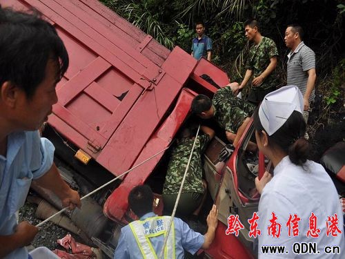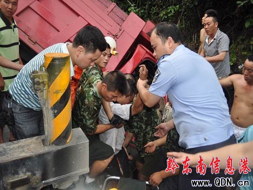 煤車側翻路坎1人被困 三穗消防破拆成功營救(圖)