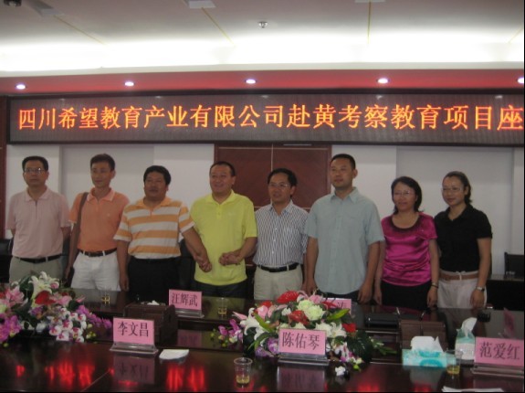 據(jù)黔東南州人民政府網(wǎng) 2011年6月15日下午,四川希望教育產(chǎn)業(yè)有限公司赴黃平縣考察發(fā)展教育項(xiàng)目座談會(huì)在黃平縣行政中心舉行,四川希望教育產(chǎn)業(yè)有限公司總裁汪輝武、投資部部長(zhǎng)李濤、投資部經(jīng)理徐偉健,黃平縣四大班子領(lǐng)導(dǎo)及有關(guān)部門負(fù)責(zé)同志出席座談會(huì)議。
