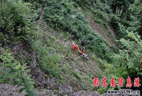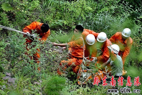 通過對地形的觀察,消防指揮員很快做出一套救援方案,由官兵利用繩索下降到懸崖下進行搜救,發現傷員便用簡易式多功能救援擔架,固定在繩索上拉運上路邊,崖上的群眾則幫助拉繩索。然而,在近百米深的懸崖之下,陡峭的地形致使救援工作的展開極其困難……其間,山上落下的滾石險些多次砸中救援人員。