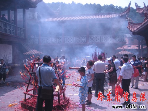 記者來到羅漢山看到,這里異常熱鬧,賣香蠟紙燭的從山腳延伸到山頂。前來上香的香客絡繹不絕。他們穿梭于寺廟,企圖讓佛光點綴自己。(凌忠云)