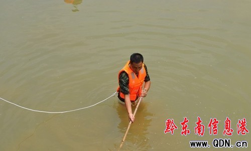官兵到達(dá)現(xiàn)場(chǎng)后,指揮員首先向報(bào)警群眾以及遇難者家屬了解事故情況,并對(duì)河濱道兩岸地形、河水深度進(jìn)行了詳細(xì)的偵查了解。事故河流大約有2-5米水深度,發(fā)現(xiàn)衣物在河濱道另外一則。針對(duì)這些情況,指揮員積極對(duì)救援行動(dòng)作出部署:一是聯(lián)系縣水利局對(duì)河濱道進(jìn)行放水降低河水深度,同時(shí)與公安機(jī)關(guān)協(xié)作對(duì)現(xiàn)場(chǎng)實(shí)施警戒,為搜索行動(dòng)提供有利條件。二是安排人員以及動(dòng)員群眾對(duì)遇難者家屬進(jìn)行安撫,穩(wěn)定其情緒。三是立即組織人員帶好防護(hù)裝備以發(fā)現(xiàn)衣物的地點(diǎn)開(kāi)始,仔細(xì)的對(duì)整個(gè)河道進(jìn)行搜救。四是進(jìn)一步對(duì)事件情況作詳細(xì)了解。經(jīng)過(guò)40分鐘左右的努力搜救,于13時(shí)36分,大隊(duì)官兵將遇難者遺體成功打撈出并進(jìn)行妥善安置。
