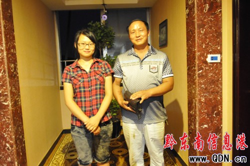 冉茂文與撿到自己的公文包的90后女孩邱艷榮合影