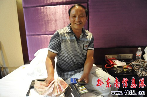 8月15日晚,冉茂文在自己入住的旅店向記者展示自己的現金、票據和各類證件完璧歸趙。