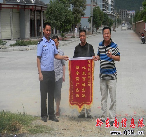“心系百姓安危,情牽貴廣高鐵”這是2011年8月25日受害人姚某某為感謝榕江公安民警快速破案贈(zèng)送的錦旗。