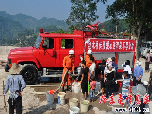 旱情加劇 消防送“甘泉”解決群眾飲水難(圖)