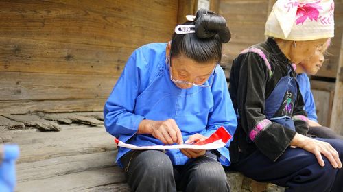 苗族刺繡幾經(jīng)失傳,在季刀寨,幾位婦女重新拾起了這門手藝,但是他們也是看著祖輩的成品來模仿制衣,這種雙針繞線繡的手藝,目前只有33位苗族婦女還會縫制,不過技術(shù)都是手手相手手沒有任何文字記載。