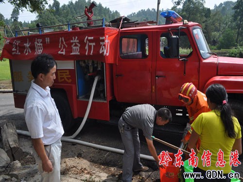 9月6日,鎮遠縣消防大隊接到轄區羊場鎮求助電話稱:該鎮下轄的老幼屯因連日干旱嚴重缺水,希望消防官兵前來送水救助。接到求助后,3名官兵乘1輛消防車趕往送水。