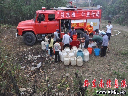 山村斷水村民用水難 “紅水桶”在行動(圖)