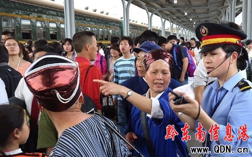 據貴州鐵路負責人介紹,貴州鐵路今天發送旅客7多萬人次,到達旅客9多萬人次,比去年同期多發送8000人次。其中短途客流主要是從貴陽、安順、遵義、都勻、貴定、鎮遠、雷山、施秉和玉屏等旅游城市為主的返程客流。為此,貴州所有火車站根據購票客流情況“彈性”增加售票窗口,實行24小時不間斷售票等措施,并且密切關注客流變化,對客流集中的方向優化運能,方便旅客出行。(王瓊攝 姜澤鵬)