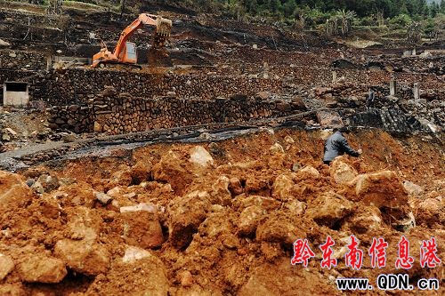 重新規劃了的受災群眾地基正在進行平整施工