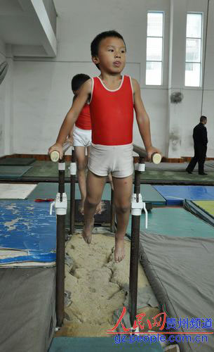 據人民網消息 在榕江縣少兒體操訓練中心,每天都有近百名3到7歲的幼兒在體操教練的指導下,緊張訓練。