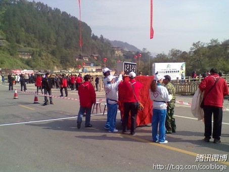 志愿者正在緊張布置寨瓦苗寨終點計時器!