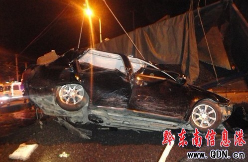 因小轎車整個車體變形過于嚴重,再加上大貨車側翻的貨箱將小轎車內另外兩名被困者死死壓住,救援難度非常大,光靠消防人員的器材裝備無法將被困者救出。在現場醫護人員確認剩下的兩名被困人員已無生命體征的情況下,現場指揮員果斷下令,利用一輛吊車將大貨車車箱吊起,再利用另一輛吊車將小轎車從車廂底下拖出,成功將兩車分離,又經過近1個小時的緊張救援,救援人員成功將余下2名遇難者遺體轉移出來,將現場移交給交警部門后,救援工作圓滿結束。