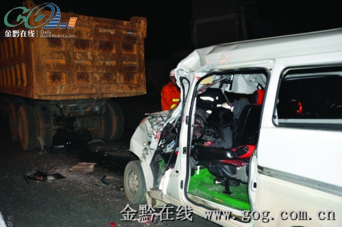 據介紹,肇事車輛從凱里西站方向往市區行駛,至事發處時,車輛突然失控,撞向了停放在路旁的一輛大貨車尾部。