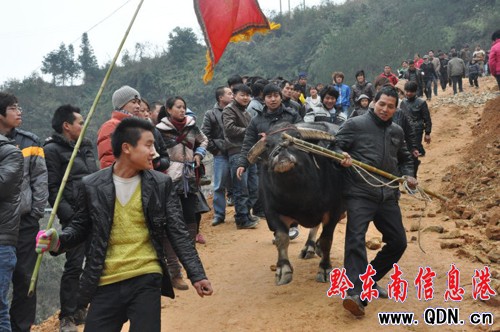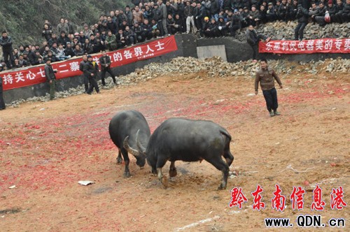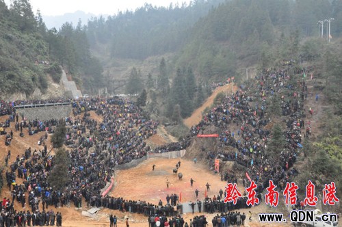 1月25日是農歷的正月初三,在榕江縣七十二寨的中心——樂里鎮斗牛場上,當地的侗族鄉親舉辦斗牛友誼賽,吸引了附近群眾以及外來游客共計2萬多人前來觀戰,熱鬧的場景給新春增添了喜慶氣氛。