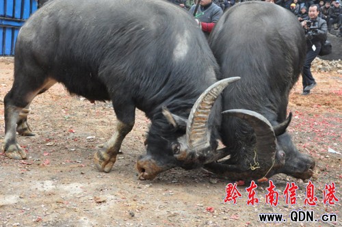 兩頭斗牛斗在一處