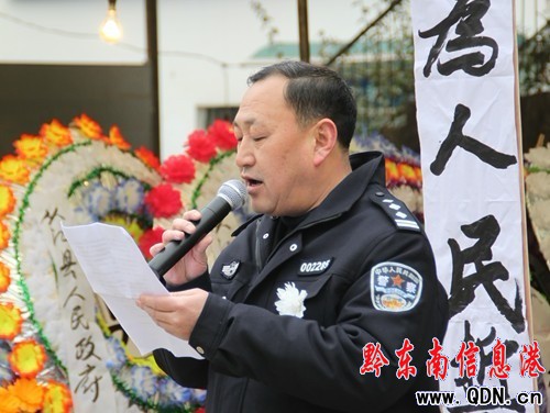 省公安廳發(fā)來唁電。“都柳江畔慰忠魂 英靈有淚填蒼海”的挽聯(lián)表達(dá)了人們對英雄的無限哀思和敬意。從江縣公安局黨委副書記、政委龍梁主持追悼會。黔東南州交警支隊政委劉貴榮致悼詞。