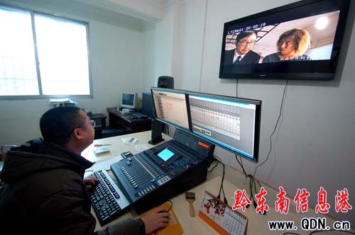 “連一聲嘆息、喘氣聲都要模仿得到位才行,要不過不了關。”楊藝林是黔東南州電影公司經理,同時兼任譯制中心的錄音師。他說,一部須要譯制的電影其首頻、視頻、樂效及臺本等資料到位后,便開始分解角色,角色中的聲音有厚重的、有沉穩的、有嬉皮式的等等,加上一些電影人物眾多、環境變化多等因素,因此配音員首先須要多次看片子,不斷揣摩他們的性格特征與聲音的特點等,將感情融入到角色中,這樣才配好音。據悉,制作完成一部電影,耗時最長要一個月,最短要七、八天。