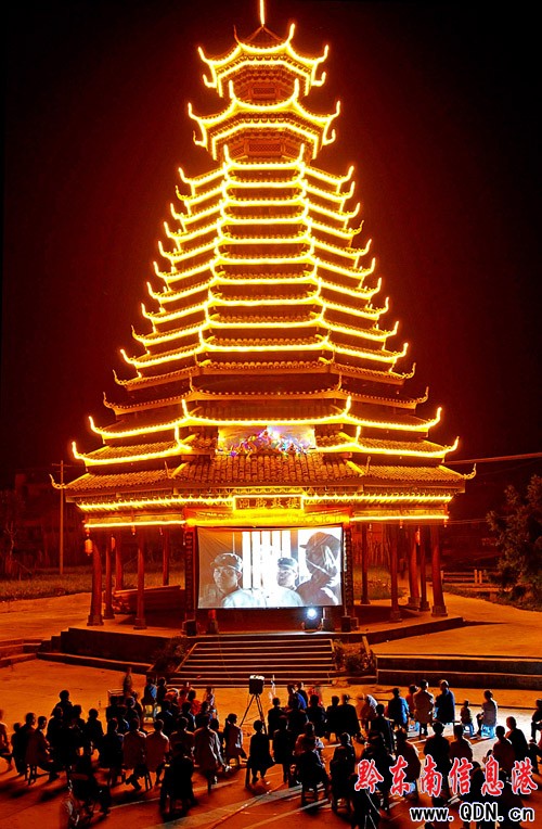 在侗寨放電影(陳沛亮 攝)