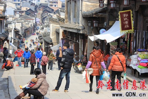 圖為黎平縣城居民在翹街曬太陽的情形