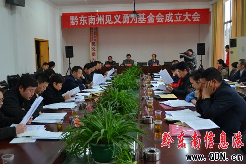 3月30日下午,黔東南州見義勇為基金會成立大會在州政法委舉行。基金會籌備委員會提名擬任的全體理事、監事共計24人參加會議。