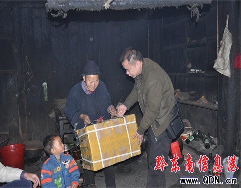 本港訊 (特約記者 石慶偉 攝影報道)11月24日,臺江縣電視臺記者張奎及黔東南州清水江及三板溪湖航務管理所(設在劍河)職工施宏達二人,帶著網友捐贈的衣服驅車前往劍河縣觀么鄉巫包村,看望和慰問78歲苗族老人李老妮及兩幼孫,送去了熱心網友的一片愛心,同時兩位先生還向老人捐助部分生活費用。