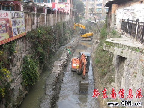 本港訊 (記者 李麗娟 攝影報道)整治金井河一直是凱里市政府改善凱里居住環境的一項重大舉措,深受廣大市民擁護。12月2日,記者在韶山南路金井河看到,兩輛工程車正在對該河進行污水吸收處理。通過吸收處理,原來的金井河發生了變化,比以前寬了,河床變得干凈了,河水也慢慢變清了。