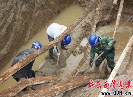 事故發生后,凱里自來水公司立即組織搶修人員和派出挖機趕赴現場掘地搶修。經過連續31個小時晝夜艱苦奮戰,到7日18時,供水管道搶修工作勝利結束,開懷新區全面恢復供水。