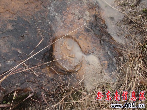 天柱縣石洞鎮槐寨村西域瀑布階附近,最近又有一天然巖石奇像發現:在西域瀑布下游右邊約1公里處,一個地名叫“高教”的邊坡上,長出的青巖板,上面呈現逼真的馬蹄形巖印。