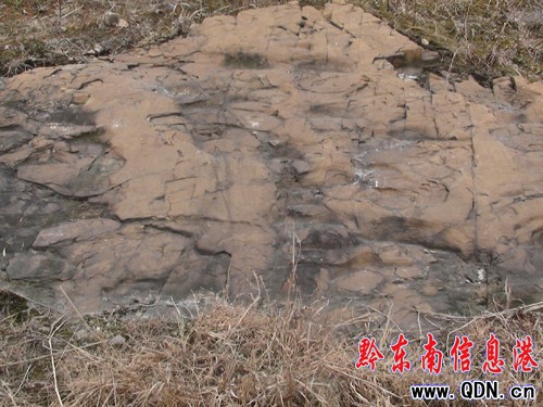 青巖板上的馬蹄形巖印有多有少,多的10多個,少則兩三個;馬蹄形巖印圈邊寬厚與現實馬相似,且有大有小,巖印直經長的達20厘米左右,短則10厘米之間;馬蹄形巖印有完整的,也有殘邊的,完整形的巖印光滑逼真,猶如快馬剛剛踏奔而過所留,缺邊形的馬蹄巖印狀似馬踏肥泥陷下的彎痕;馬蹄形巖印有單邊的也有重疊的,單邊踩單邊,如伴侶馬群在戲耍,重疊馬蹄形巖印,大印套小印,又似一群毌馬喂吃崽馬踩登之跡;馬蹄形巖印有清晰有模糊,充滿神圣的誘惑感和神秘感,很有欣賞價值,確為一天然的奇觀。