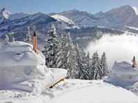 Whitepod位于瑞士的阿爾卑斯山的腹地,冰屋的內(nèi)室充滿了創(chuàng)造力,燃木壁櫥,豪華的床鋪,完備的浴室一應(yīng)俱全。