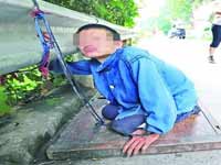江津白沙鎮一名男子自小患有智障,母親尋醫問藥未果后,因擔心他不慎走失,無奈之下用繩子將他捆住(見下圖),這樣的日子已近40年。如今,滿頭白發的母親每天都像呵護嬰兒般,照顧40歲兒子的吃喝拉撒。