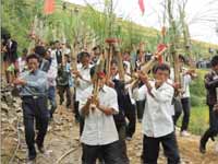 18日,從江縣加榜鄉加車村迎來了一年一度的新米節。來自全鄉13個村的27個蘆笙隊上千隊員聚集加車村古蘆笙塘,共同慶祝豐收節(見下圖)。新米節是該鄉一個隆重的傳統節日,今年的新米節以梯田金秋美景、農耕文化展、梯田風景攝影展、苗族歌曲表演以及和諧蘆笙對抗等豐富的活動迎來各界上萬賓客。(勞維 歐光亮)