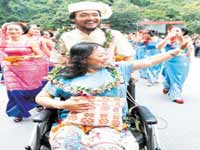 26歲北京小伙樊蒙為了圓殘疾媽媽的旅游夢,從今年7月11日開始,經過3個月零一天的步行,樊蒙推著輪椅上的母親,將這段距離一步一步縮短。12日下午4點,樊蒙母子終于踏上了西雙版納的土地(見下圖)。
