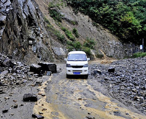 新華社訊 10月2日下午,記者在途徑貴州臺江縣至紅陽路段時發現,自9月29日以來,因持續降雨引發山體滑坡,造成10多個路段被突然坍塌下來的山體石塊掩埋。圖為滑坡現場。