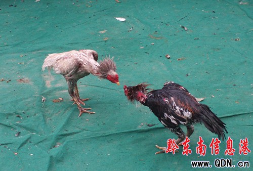 據斗雞協會王會長介紹,這兩只雞都來頭不小,凱里的“小白龍”渾身雪白,乃斗雞中十分罕見的白雞,擅長跳起從空中攻擊,實乃“斗雞中的戰斗機”;而越南名雞“花斑虎”體力充沛,擅長防守反擊,更是早已聞名,身價早已突破1萬元人民幣,所謂既生瑜何生亮,這兩只雞提前相遇,比賽的其精彩程度恐怕不亞于決賽。