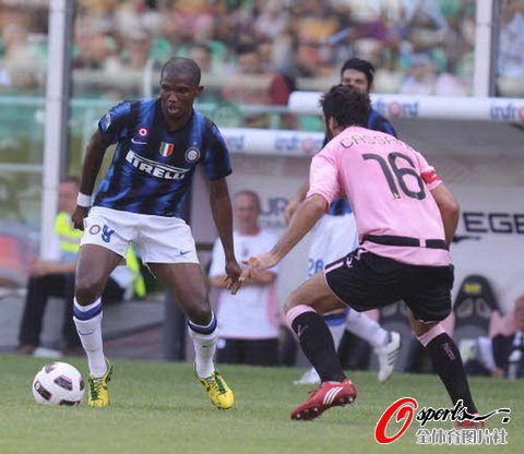 騰訊體育訊 北京時間9月19日晚,2010-2011賽季意甲聯賽第3輪,國米客場2-1逆轉巴勒莫,第28分鐘,帕斯托雷打門被擋,伊利西奇補射建功。第62分鐘,米利托背身斜塞,埃托奧爆射扳平。第69分鐘,斯坦科維奇妙傳,埃托奧梅開二度完成逆轉。