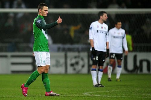 騰訊體育訊 北京時間12月9日凌晨3時45分,歐冠A組最后一輪比賽打響,國際米蘭去到德國威悉球場客場挑戰(zhàn)不來梅隊。最終國米0-3負于不來梅,上半場不來梅中衛(wèi)普羅德爾頭球先下一城,下半場新星阿諾托維奇面對舊主打入一球,完場前皮薩羅遠射鎖定3-0的比分。馬特拉齊在賽前熱身時肌肉拉傷,而薩內(nèi)蒂則在與對手碰撞中腿部出現(xiàn)不適被換下,潘德夫、默特薩克都打中門框。輸球的國米以小組第二身份出線晉級16強。