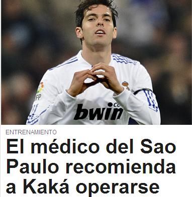 在卡卡的膝傷問題上,為卡卡在8月份主刀的醫師馬滕斯和阿塔蘭意見相左。前者認為,卡卡的手術很成功,這次膝蓋損傷只需要靜養即可;而阿塔蘭則認定,卡卡最好是能夠回到巴西再次接受手術。賽爾電臺還透露,卡卡多次表達自己想返回巴西接受治療的愿望,但被皇馬方面拒絕。