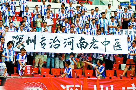 深圳主場看臺上的“深圳專治河南老中醫”橫幅 小新 攝