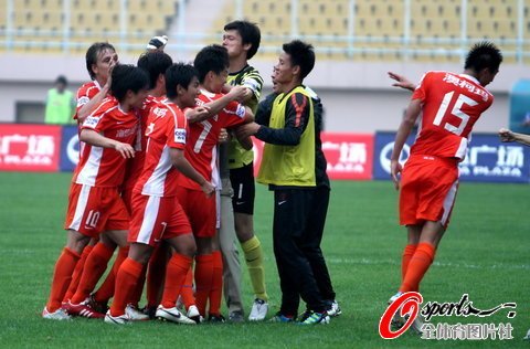 76分鐘,青島隊獲得一次絕好機會,青島隊右路挑傳禁區,朱建榮背身拿球回作給隊友,姚江山禁區內大力抽射球稍稍打偏。