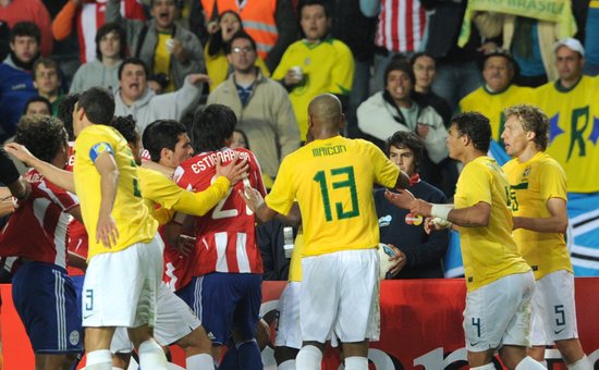 騰訊體育訊 北京時間7月18日凌晨,2011美洲杯1/4決賽,衛冕冠軍巴西在點球大戰上0-2不敵巴拉圭,無緣4強。埃拉諾、蒂亞戈-席爾瓦、安德雷-桑托斯和弗雷德均罰丟點球,這樣本屆美洲杯兩大熱門阿根廷和巴西均遭淘汰。