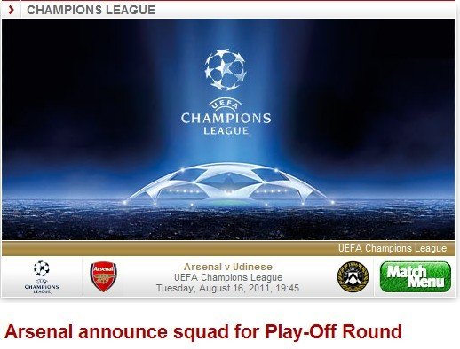 11-12賽季歐冠附加賽將在8月16、17日和8月23、24日進行兩回合較量,阿森納與意大利的烏迪內斯對陣,此前法布雷加斯和納斯里深陷轉會風波,一旦兩人代表阿森納出戰歐冠附加賽,就將失去代表其他球隊參加歐冠聯賽的資格,因此阿森納是否為這兩人申報歐冠附加賽資格將對兩人留隊或轉會起到重大影響。