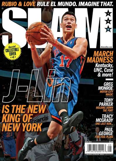 這期雜志的封面標題更是夸張,在林書豪突破上籃的圖片旁邊,《Slam》用的是“林書豪乃是紐約新國王”的標語。