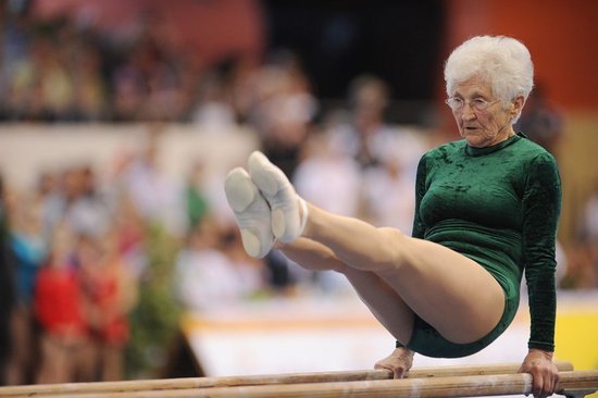 嫻熟的體操技巧很難讓人相信她已86歲高齡