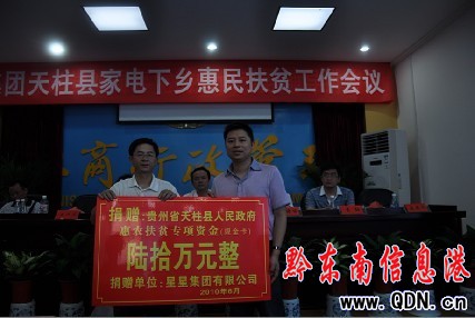 本港訊 (楊仁海) 6月29日,天柱縣召開“家電下鄉”惠民扶貧工作會議。星星集團捐贈60萬元惠農扶貧專項資金,讓天柱貧困農民吃上“家電下鄉”雙套餐。