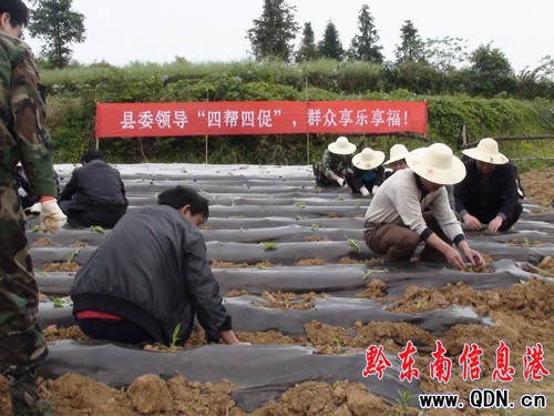 為了打好烤煙移栽攻堅戰,天柱縣主要領導分工負責種煙鄉鎮的聯系工作,關鍵時刻把煙苗移栽工作當成“四幫四促” 的重點來抓,不斷深入聯系點進行指導。烤煙移栽開始,副縣長楊祖恒、縣煙辦等部門領導職工深入渡馬鄉現場指導工作;縣委書記文松波、副書記吳炳鋼帶領縣委職工和石洞鎮全體黨政干部前往種煙農家地里開展“四幫四促”活動,幫助石洞鎮煙農移栽煙苗。石洞鎮是天柱縣9個種煙鄉鎮之一,也是縣委辦公室定點烤煙幫扶鄉鎮。落實烤煙種植面積1800畝,起壟面積1776畝,移栽面積1680畝。
