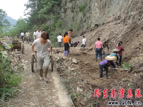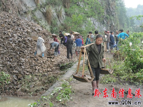 為確保水利灌溉和安全供水,災情發生后,該縣立即投入5萬元,組織干部及民工30多人緊急搶修。由于地處懸崖峭壁,目前還有山石滑落,施工非常危險,機械暫不能進場,全靠干部群眾揮鏟舞鋤,用斗車裝運泥土沙石,晝夜一線奮戰。根據現場搶修情況預計,3天之內將修通渠道,正常恢復灌溉和供水。