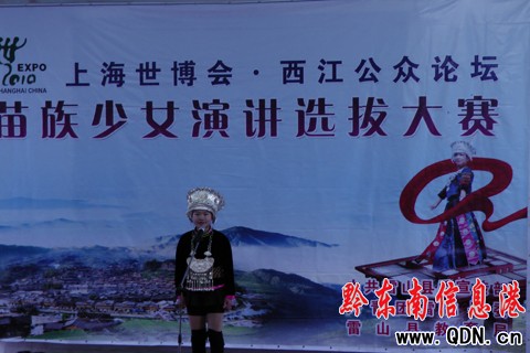 本港訊 (龍云雄)2月5日下午,由中共雷山縣委宣傳部、共青團雷山縣委、雷山縣教育局聯合主辦的以“原生文化,大美苗鄉”為主題的上海世博會·西江公眾論壇苗族少女演講選拔大賽在雷山民中階梯教室成功舉行。